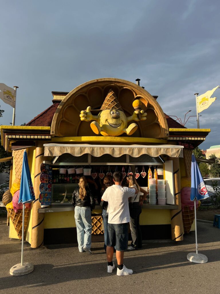 Today, July 29, 2025, our train journey continued, this time heading to Vienna, to explore and learn how different cities in Europe present sustainable solutions that embrace the various dimensions of sustainability. The city of Vienna is like a vast garden, and offers unique examples of how spaces can be transformed into strategically inclusive, democratic, environmentally educational territories, and promote the responsible use of new technologies. We visited the “Hundertwasser Village,” a complex of irregular buildings designed to be sustainable and in harmony with nature. The Village was built according to concepts by artist Friedensreich Hundertwasser during 1990 and 1991. The building was once used as a car tire factory and, after renovation, is a must-see for the irreverent and symbolic architecture and philosophy that combines the social well-being of a community with respect for nature. This residential building was commissioned by the City of Vienna to create a public housing project that broke free from the rigid norms of conventional architecture, and today it is a symbol of Vienna’s commitment to innovative and sustainable architecture. Donauinsel, “Prater Park,” the oldest amusement park in the world, was also part of the itinerary. Throughout its history, the Ferris wheel has survived major natural disasters and war conflicts. It was during the final days of World War II, in 1945, that bombings and fire destroyed much of the wheel. The cabins that could not be salvaged are now housed in the underside of the Ferris wheel, serving as an exhibition through which visitors can travel through different eras of the past. The entire park is an adventure, and some rides challenge only the bravest. An example of the resilience and emotional intelligence of a region that transforms rubble into a space for leisure, education, and the promotion of an inclusive identity, an example of the sustainable reuse of structures.
