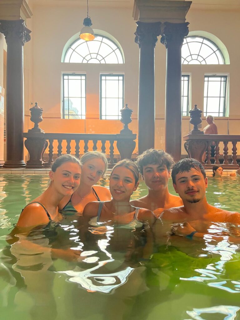 Back on the train, we headed to Budapest, the capital of Hungary. In addition to seeing the Hungarian House of Music, a building with efficient heating and cooling technology, this building won the Best Use of Music award in the Real Estate Development category at the 2020 American Music Cities Awards. The Hungarian House of Music is considered a sustainable solution due to its innovative design that integrates nature and promotes energy efficiency. The project, by architect Sou Fujimoto, utilizes natural light, natural ventilation, and rainwater harvesting to reduce energy consumption. Furthermore, the parallel-slatted facade allows trees to grow and integrate with the structure, creating a harmonious environment. And of course, we couldn’t miss a dip in Budapest’s iconic thermal pools, which use geothermally heated water for therapeutic and tourism purposes