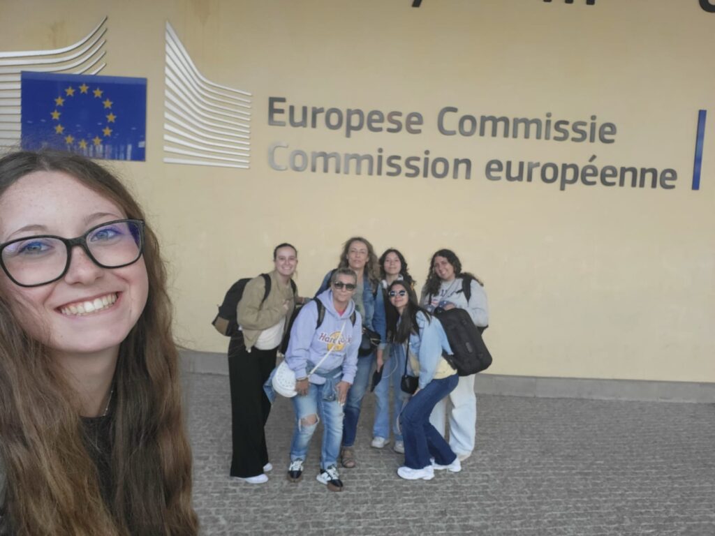 Later, we visited the “Experience Europe” building, a space where we engaged in several interactive activities and games, watched virtual reality presentations, and viewed videos that allowed us to learn more about the prominent leader of the European Commission, Ursula von der Leyen – the first woman to hold such a prestigious position in the European Union. She is one of the great leadership examples we look up to, as she managed to balance her family life with her professional career, making her a key figure for our project.